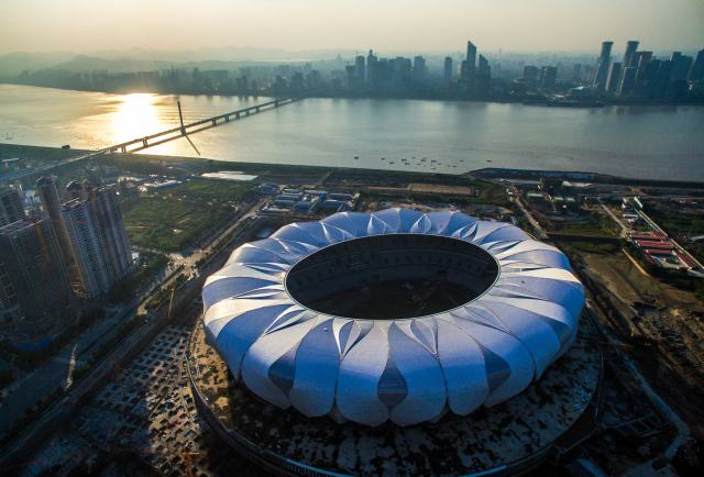 在建中的主場(chǎng)館,整體外形和2008年北京奧運(yùn)會(huì)的有些相似,實(shí)際上設(shè)計(jì)理念和前者是一樣的,只是在膜的選擇運(yùn)用上有所區(qū)別。北京奧運(yùn)會(huì)的鳥巢是頂部覆膜,用外露的鋼結(jié)構(gòu)體現(xiàn)鳥巢的意境;’杭州峰會(huì)主場(chǎng)館,是將膜材包在鋼結(jié)構(gòu)的外面,用膜材優(yōu)雅的外表和獨(dú)特的造型來詮釋其時(shí)尚壯麗的內(nèi)涵。