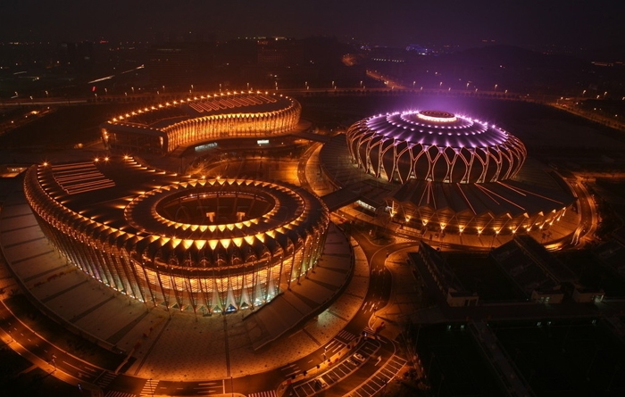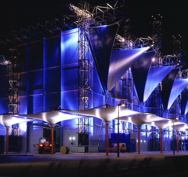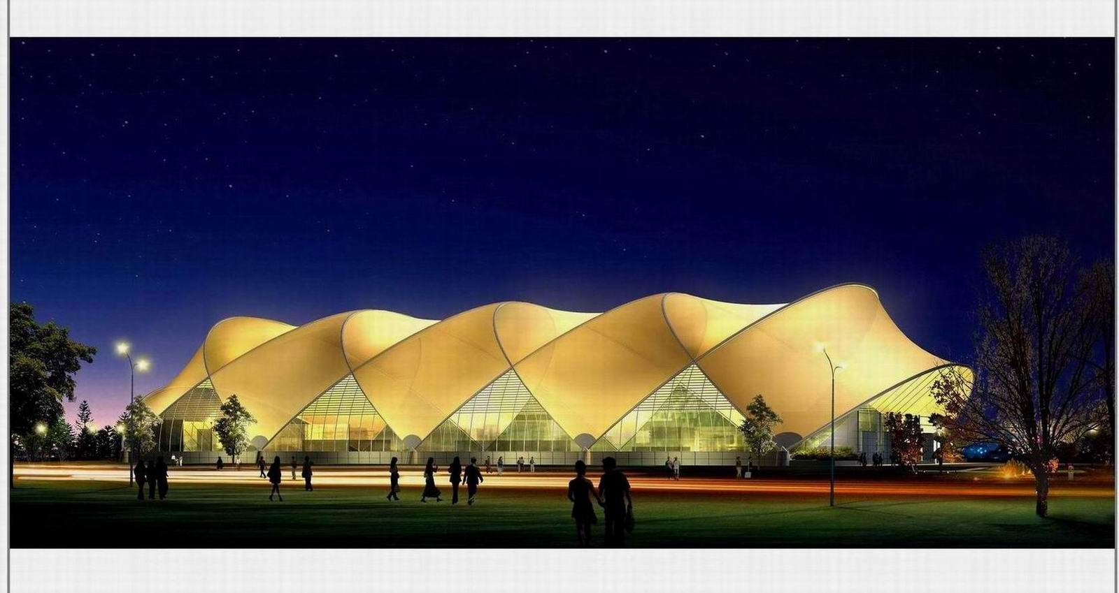 3、通過選擇特定類型的膜材,夜晚,建筑物內(nèi)的燈光透過屋蓋的膜照亮夜空,建筑物的體型可以顯現(xiàn)出夢幻般的效果。這種結(jié)構(gòu)形式特別適用于大型體育場館、入口廊道、公眾休閑娛樂廣場、展覽會場、購物中心等領(lǐng)域。