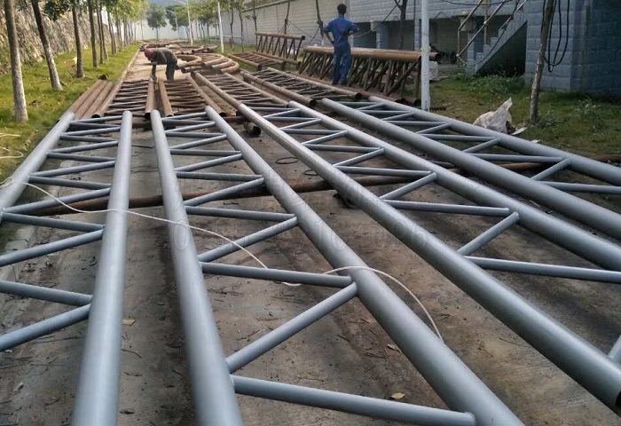經(jīng)過一段時間的準備,燁興膜結(jié)構(gòu)觀瀾水廠水池加蓋項目悄然動工,目前該項目正處于鋼結(jié)構(gòu)拼裝加工階段。從現(xiàn)場發(fā)回來的照片可以看到,該項目的弧形鋼構(gòu)都是在我們的鋼鐵廠進行預成型后再拉到現(xiàn)場進行拼裝,現(xiàn)在多條龍骨已經(jīng)加工完成,并已經(jīng)圖上防銹底漆。