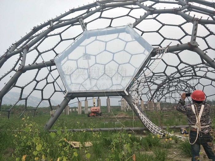 ETFE膜材既薄且透,材質(zhì)柔軟,無(wú)論單層使用還是加工成氣枕形式,都需要高強(qiáng)度的支撐結(jié)構(gòu)。為了使ETFE膜結(jié)構(gòu)建筑看起來(lái)更有藝術(shù)美感,一般是用泰森多邊形法來(lái)設(shè)計(jì)ETFE膜結(jié)構(gòu)單元的形狀和排布。將膜結(jié)構(gòu)單元加工完成以后,安裝工序能否做好,關(guān)系著整個(gè)工程的美觀程度及工程質(zhì)量。