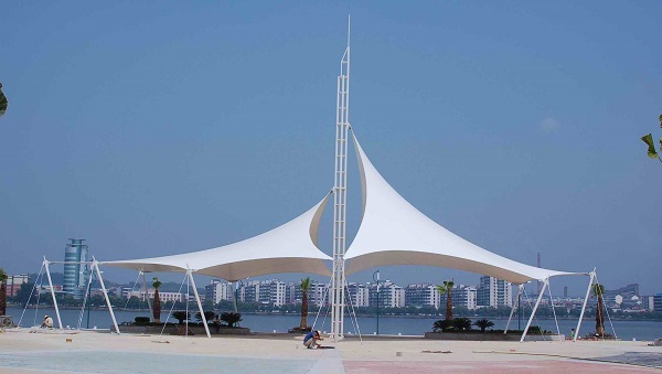 張拉膜時刻都要保持最佳的繃緊狀態(tài),賦予膜布一定剛性,以減少風吹造成的波動影響
