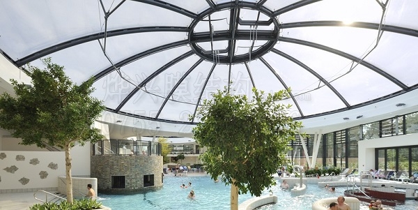 ETFE膜結(jié)構(gòu)的獨(dú)特聲學(xué)性能,可使室外環(huán)境結(jié)為一體,使人們?cè)谑覂?nèi)擁有置身于大自然的清爽感覺(jué)。燁興膜結(jié)構(gòu),賦予建筑科技與美麗。