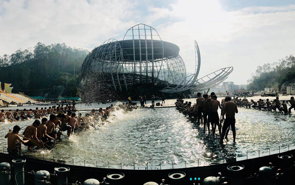 現(xiàn)場(chǎng)已經(jīng)安排表演人員進(jìn)行緊張排練,很佩服小伙子們大冬天赤著膀子在水里排練的敬業(yè)精神