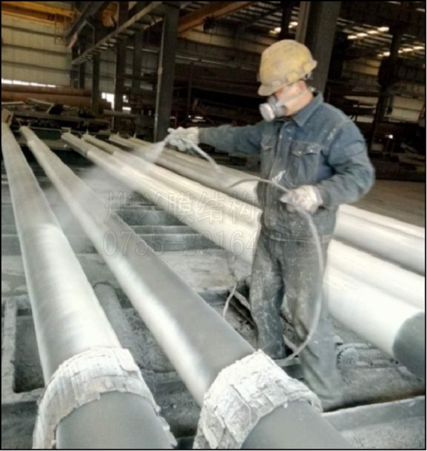 上漆之前要先經(jīng)過專業(yè)的噴砂打磨,圖為噴砂處理過的鋼管表面