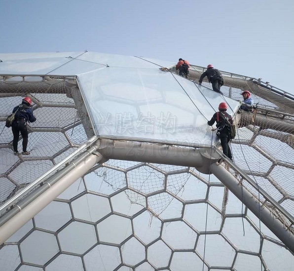 以上是對“燁興連云港薔薇湖ETFE膜結(jié)構(gòu)生態(tài)園裝膜忙”介紹。在這里燁興膜結(jié)構(gòu)公司小編提醒您,如果您對ETFE膜結(jié)構(gòu)項目還有疑問或者有興趣的話,請點擊聯(lián)系我們網(wǎng)頁右側(cè)的在線客服,或致電400-9967-995,燁興膜結(jié)構(gòu)——從心開始為您服務的貼心小顧問。