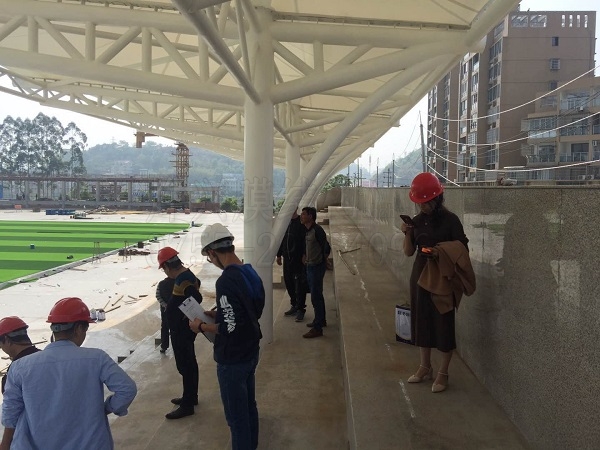 福建漳平一中膜結(jié)構(gòu)看臺驗(yàn)收現(xiàn)場