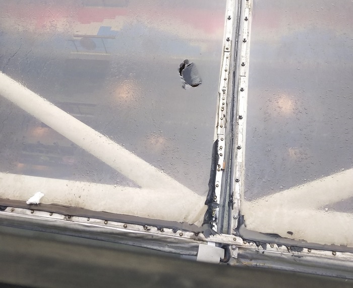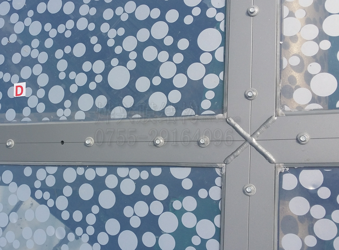 以上是某商業(yè)中心ETFE屋面的外觀圖。這是單層ETFE膜結(jié)構(gòu)屋面,做成這樣的效果,原因是承建單位沒(méi)有ETFE膜結(jié)構(gòu)的技術(shù)實(shí)力和施工經(jīng)驗(yàn),這是將安裝普通PVC膜材的壓膜方法生搬硬套導(dǎo)致的后果。外行人可能會(huì)覺(jué)得:看起來(lái)雖然不美觀,但從里面又看不到,不影響實(shí)際使用。而從專業(yè)角度來(lái)看,這樣的工程可以歸類為垃圾工程。上面的工程,有幾個(gè)明顯的缺點(diǎn):1、使用不專業(yè)的壓膜方法,在膜面上開(kāi)孔,降低了整個(gè)膜面的抗壓強(qiáng)度,雨水還可能通過(guò)螺栓處進(jìn)行內(nèi)滲,造成漏水和銹蝕破壞;2、使用普通膠水進(jìn)行防水密封,ETFE膜材是不粘材料,膠水老化一段時(shí)間后,密封防水效果就會(huì)消失,進(jìn)而出現(xiàn)內(nèi)漏。從圖中也可以看到,屋面的低點(diǎn)應(yīng)該已經(jīng)出現(xiàn)滲水現(xiàn)象,所以打了一層厚厚的防水膠,左側(cè)的壓膜板上的螺栓不規(guī)整且較密,那是因?yàn)闈B水嚴(yán)重而臨時(shí)加固的。