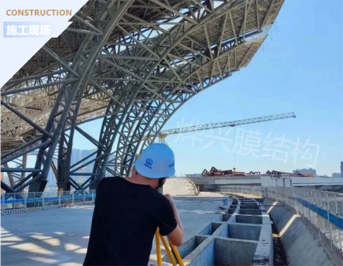 燁興作為膜結(jié)構(gòu)專業(yè)承包商之一,負(fù)責(zé)為白云站項(xiàng)目打造一萬(wàn)多平米的PTFE膜結(jié)構(gòu)“木棉花瓣”。寶劍磨礪鋒利,梅花香自苦寒來,我們必會(huì)用我們的辛勤汗水和豐富的技術(shù)經(jīng)驗(yàn)讓白云站的“木棉花”完美綻放。如今燁興團(tuán)隊(duì)已經(jīng)進(jìn)場(chǎng)施工,現(xiàn)場(chǎng)正有條不紊地進(jìn)行膜結(jié)構(gòu)安裝先期準(zhǔn)備工作。